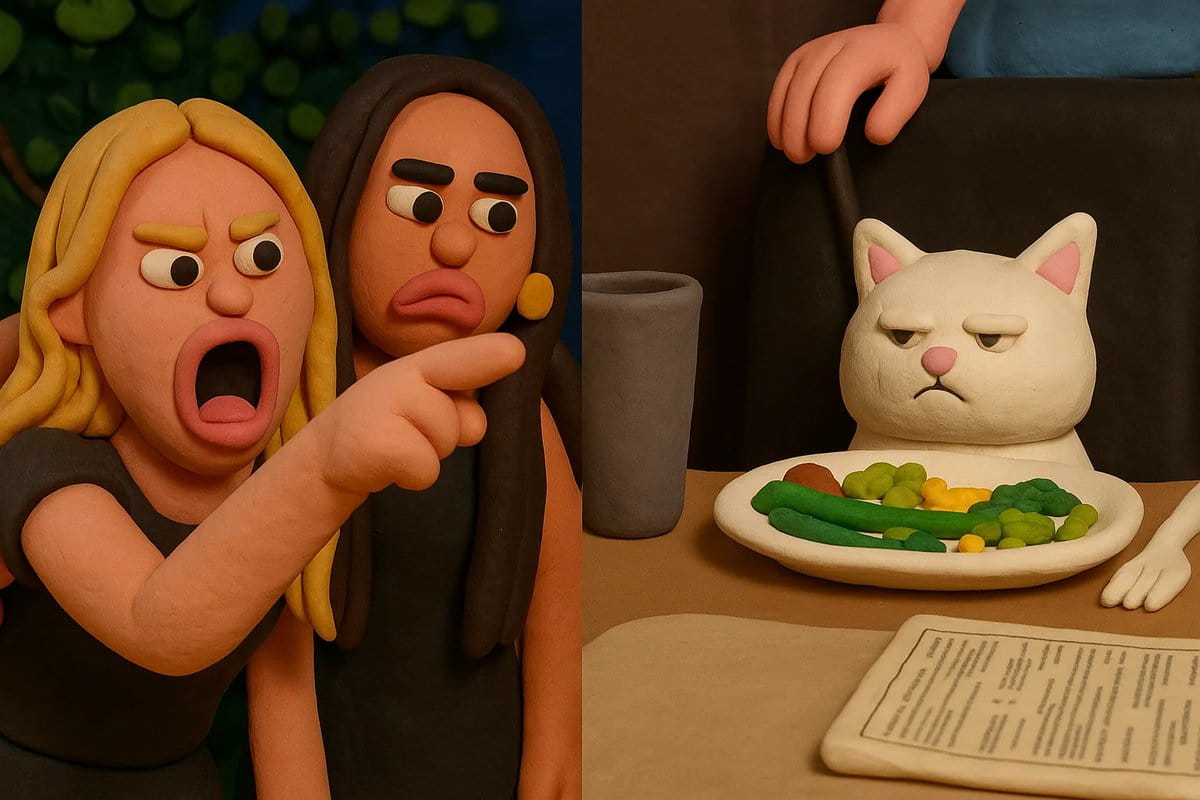Crie um meme novo editando o texto enquanto mantém a imagem subjacente e a tipografia original intactas.